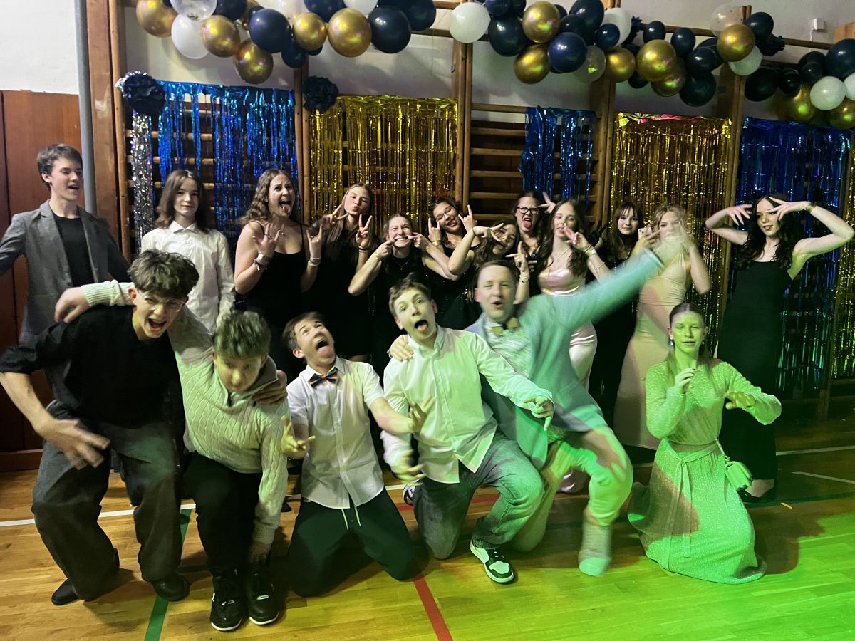 Ve čtvrtek 19. března se na naší škole uskutečnil školní ples pro žáky 2. stupně, který s nadšením a velkou péčí uspořádal školní parlament. Celá akce se nesla v duchu slavnostní elegance. Výzdoba v modré, zlaté a stříbrné barvě vytvořila noblesní atmosféru, která všechny přítomné okamžitě vtáhla do plesového dění. Po úvodním přivítání se žáci přesunuli na parket, kde si společně zatancovali. Nechyběly ani oblíbené soutěžní hry, které rozproudily dobrou náladu – židličkovaná i tanec s balónky sklidily velký úspěch a zapojili se téměř všichni. Jedním z vrcholů večera byla tradiční volba krále a královny plesu. Velkým zpestřením byla návštěva zástupců školního parlamentu z Krnova, kteří přijeli ples podpořit a načerpat nové zkušenosti. Celý večer se nesl ve slavnostním a radostném duchu. Děti, ale i učitelé si ples skutečně užili, vytvořili si spoustu hezkých vzpomínek a školní parlament opět ukázal, že dokáže připravit akci na vysoké úrovni.
